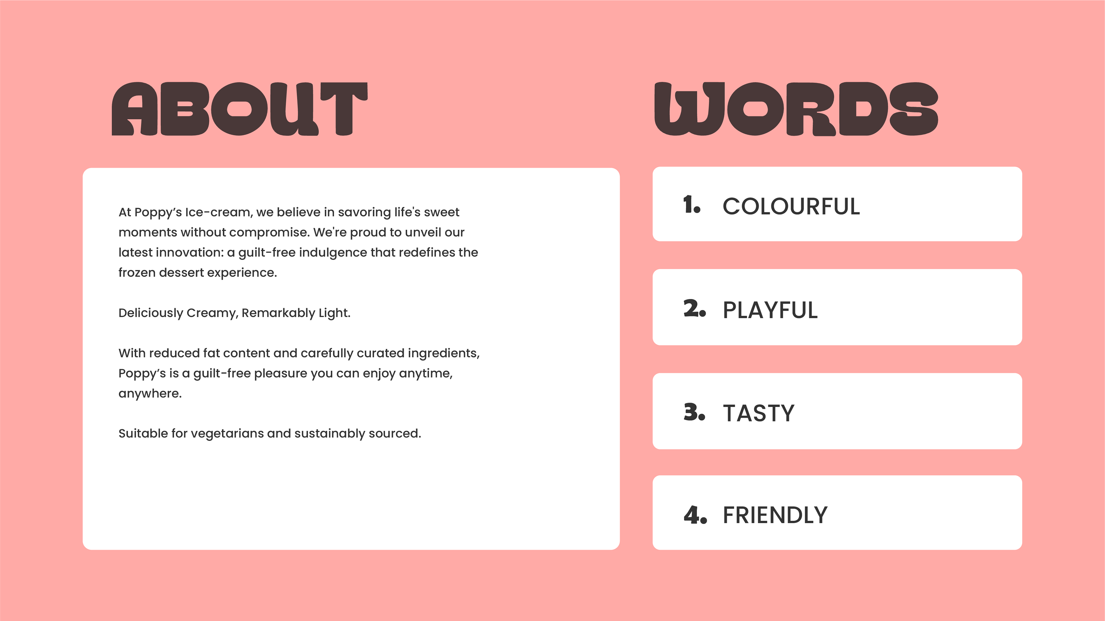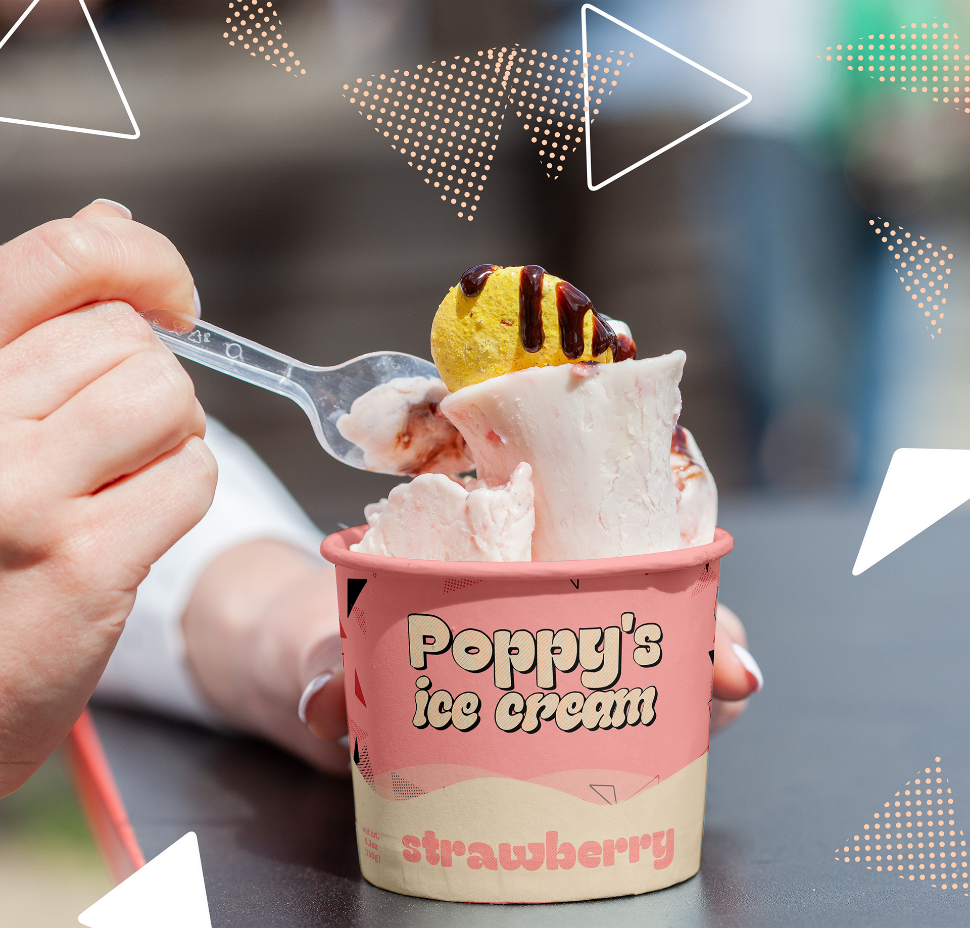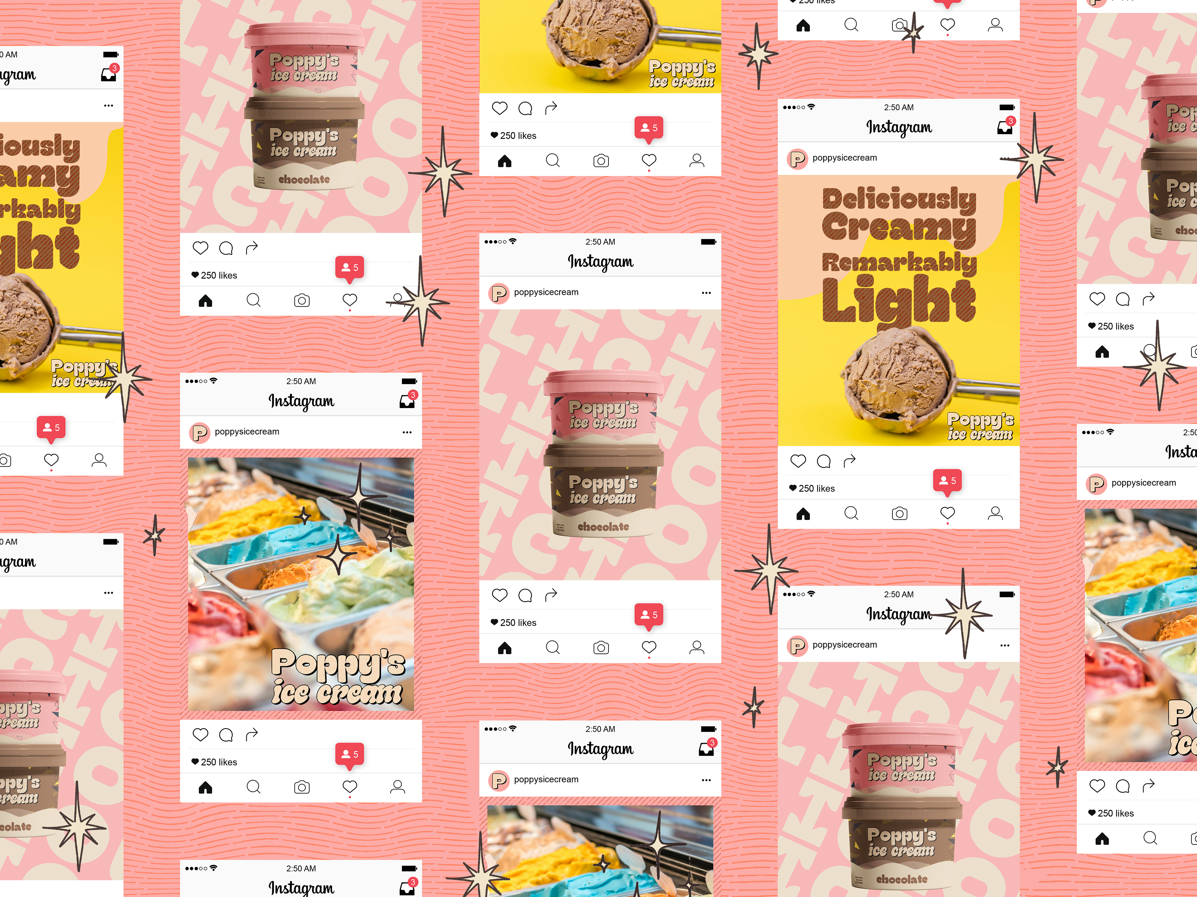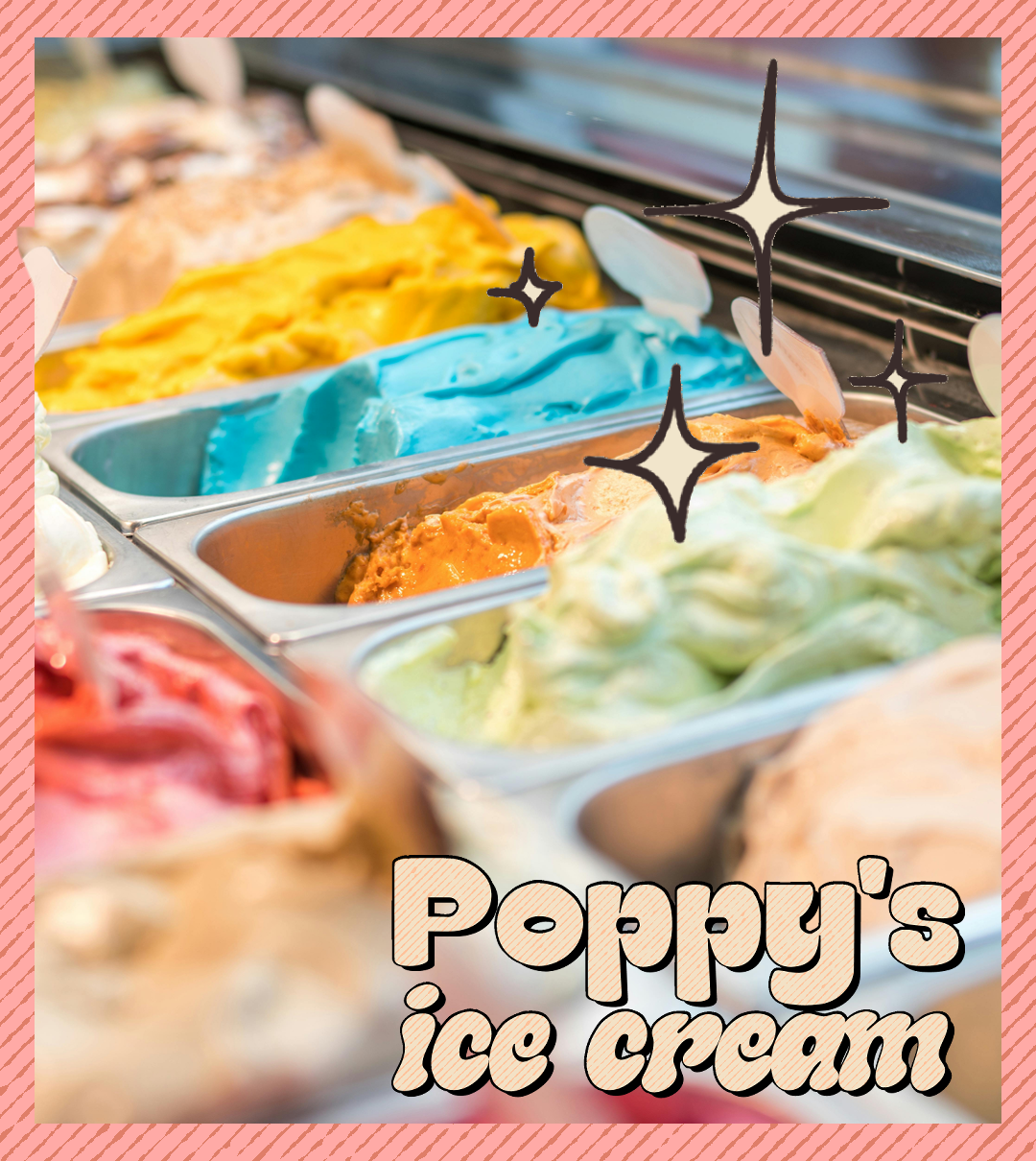 Poppy’s Ice cream is a visionary concept brand project that aims to revolutionize the world of ice cream. With a focus on innovation and creativity, Poppy’s strives to bring a fresh perspective to the traditional ice cream experience, enticing customers with unique flavors and captivating designs, with the catch being its low-fat guilt free delights. The brand exudes a sense of adventure and whimsy, inviting patrons to indulge in a delightful escape with each scoop.
